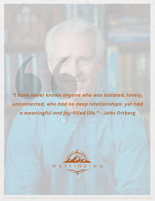 “I have never known anyone who was isolated, lonely, unconnected, who had no deep relationships- yet had a meaningful and joy-filled life.” - John Ortberg