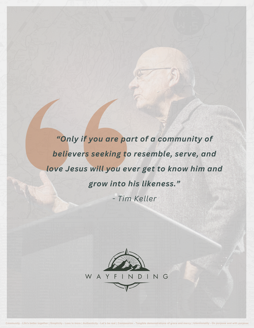 “Only if you are part of a community of believers seeking to resemble, serve, and love Jesus will you ever get to know him and grow into his likeness.” - Tim Keller