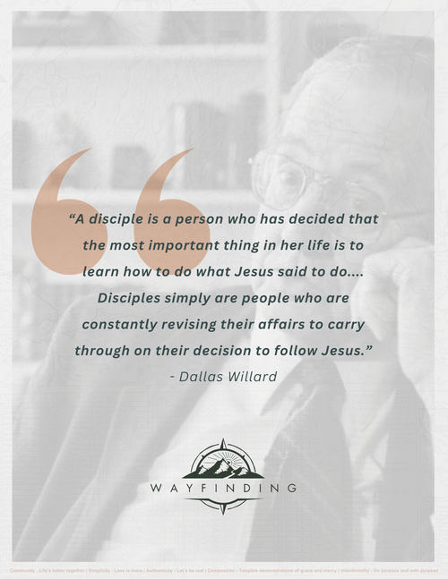 “A disciple is a person who has decided that the most important thing in her life is to learn how to do what Jesus said to do.... Disciples simply are people who are constantly revising their affairs to carry through on their decision to follow Jesus.” - Dallas Willard