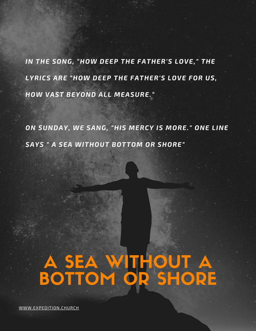 On Sunday, we sang, "His Mercy is More." One line says " a sea without bottom or shore"
