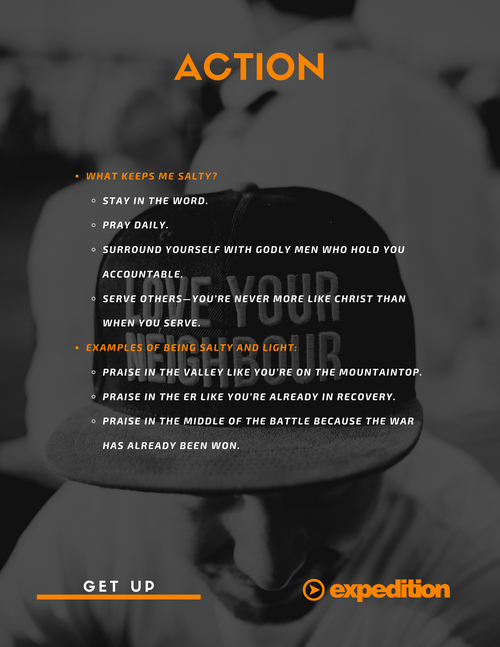 - When life knocks you down, Christ says, “GET UP!” Be salty. Be a light.